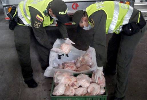 Según las cifras de la Polfa en 2013 se decomisaron 3.500 unidades de pollo en pie, para este año la cifra ha aumentado a 19 mil unidades. “En carne en canal de pollo llevamos 6 toneladas, el año pasado decomisamos 2 toneladas. La batalla no ha sido fácil”, puntualizó el teniente coronel Rodolfo Carrero Villamil.