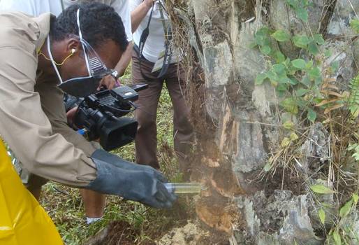 “Hay un método químico, que consiste en la aplicación de un herbicida específico para erradicar la enfermedad, porque hay otros productos que hacen que la palma muera y se descomponga de forma húmeda, lo cual atrae plagas. Si esto se hace, se necesita de más tiempo para poder sembrar palma, además es un riesgo porque las plagas pueden estar presentes en el siguiente ciclo de cultivo.
