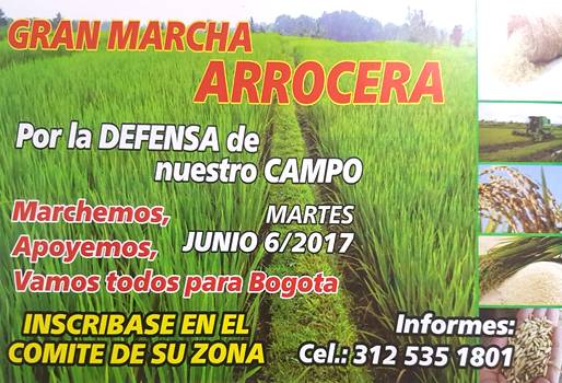 Debido a las graves problemáticas que está experimentando el sector arrocero del país por el tema del precio, las importaciones y demás, el gremio convocó una gran marcha que tendrá lugar el día de hoy en la ciudad de Bogotá.