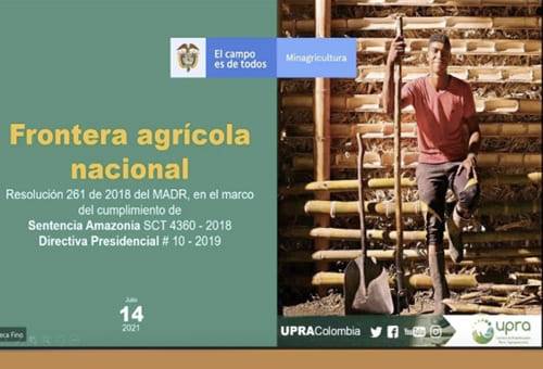 Ante el Comité de Implementación de la Sentencia de Amazonia, el director de la Upra, Felipe Fonseca Fino, presentó la definición de la Frontera Agrícola Nacional, como parte del proceso de difusión que responde a las órdenes impartidas por la Corte Suprema de Justicia en la Sentencia STC4360, que dicta que el Ministerio de Agricultura y Desarrollo Rural, en coordinación con la UPRA y el Ministerio de Ambiente y Desarrollo Sostenible, implementar un Plan de Difusión de la Resolución 0261 de 2018 que define la Frontera Agrícola Nacional, con especial prioridad en las regiones más afectadas por la deforestación.