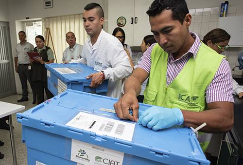 El banco de germoplasma de CGIAR en Palmira, Valle, alcanzó un hito de conservación con un despacho de duplicados de seguridad de accesiones de fríjoles a la Bóveda Mundial de Semillas de Svalbard en Noruega.