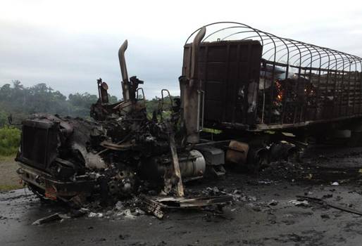 De igual forma, en vías de Buenaventura fueron quemadas dos tractomulas y un furgón; en la zona las vías continúan bloqueadas. (Lea: Más de 200 mil mineros se unen al paro nacional)