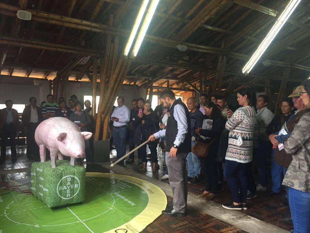 Esta novedosa herramienta didáctica permite enseñar acciones de Bienestar Animal que repercuten en la calidad de la producción porcícola de nuestra región. Más de 700 productores porcícolas en Perú y Colombia fueron capacitados por Bayer durante 2017 gracias a esta tecnología.