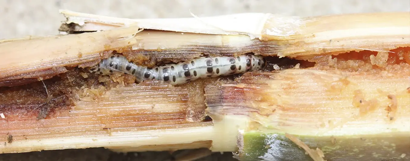 Este insecto afecta tanto plantas jóvenes como adultas, generando perforaciones en la base de los tallos, galerías internas, muerte de cogollos y fractura de tallos. Debido a la baja eficacia de los insecticidas químicos en el manejo de sus larvas, el control biológico se ha convertido en una alternativa prioritaria para enfrentar esta problemática.