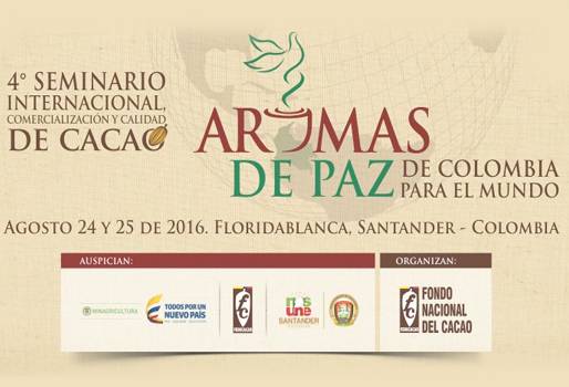 Este 26 de agosto concluirá el 4º Seminario Internacional comercialización y calidad de Cacao “Aromas de paz de Colombia para el mundo”, en el municipio de Floridablanca, Santander.