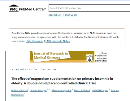 Estudio publicado en la revista Journal of Research in Medical Sciences, se titula “The effect of magnesium supplementation on primary insomnia in elderly subjects” .