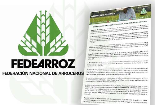 Fedearroz también hizo un llamado a la calma en el mercado, indicando que las condiciones actuales no son incentivo para las importaciones, toda vez que el precio interno está por debajo de los costos de importación desde los países andinos.