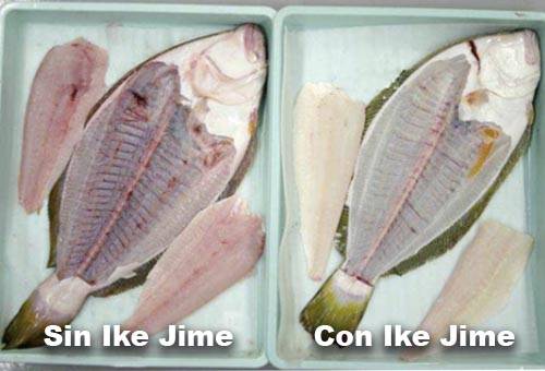 Al abrir un ejemplar por la mitad, se pueden ver las diferencias: la carne se ve más limpia en el pescado sacrificado por la técnica de ikejime, con un color más blanco y sin coágulos de sangre. La ausencia del líquido rojo permite que se pueda refrigerar por muchos más días sin temor a que se dañe.