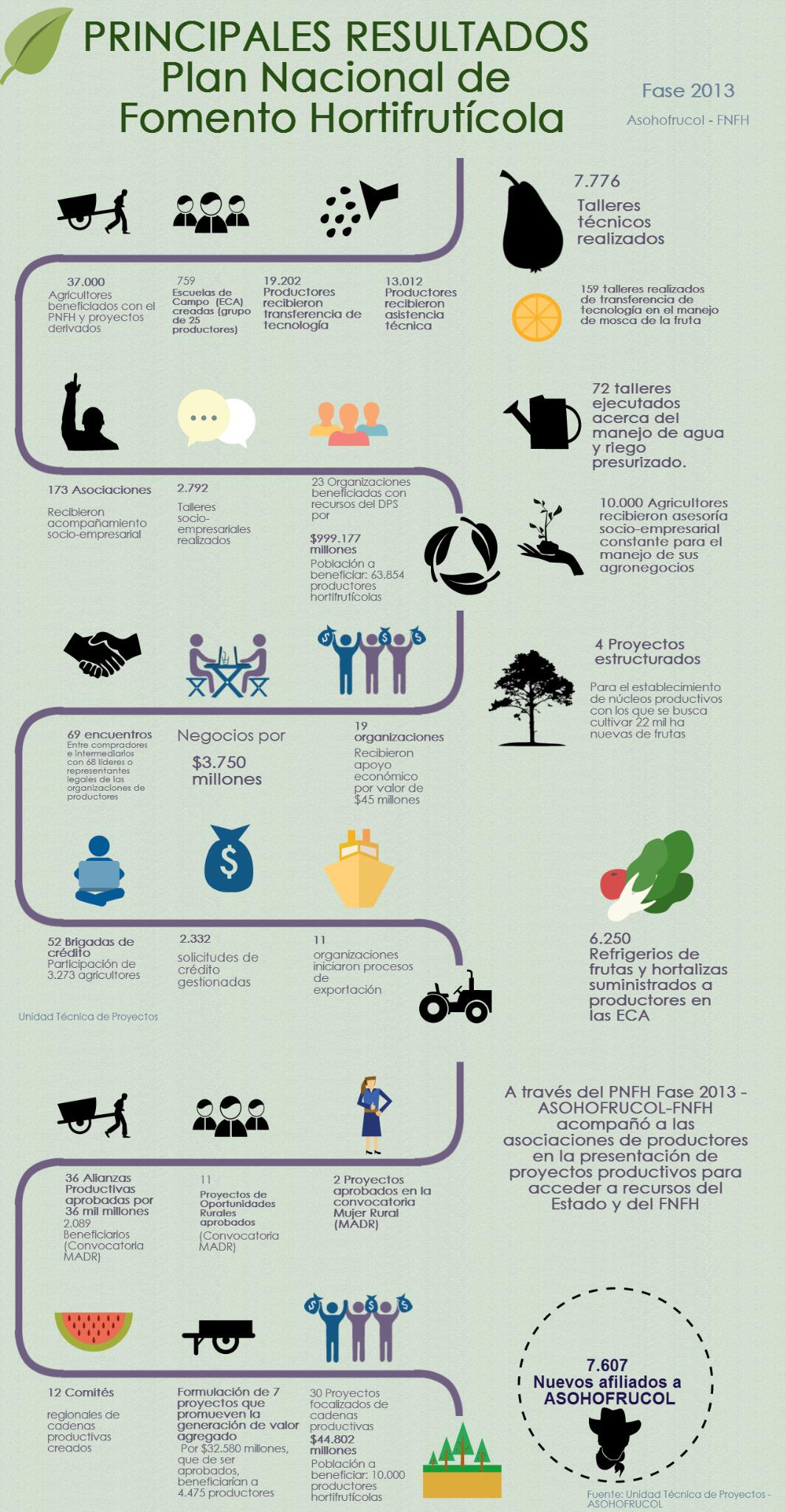 De igual forma, la gestión de recursos con los proyectos de Alianzas Productivas, Oportunidades Rurales, el Sena, Unicaldas y otras convocatorias apoyadas por Asohofrucol, con recursos del Fondo Nacional de Fomento Hortifrutícola, Fnfh, han incrementado la base de productores beneficiados y capacitados.