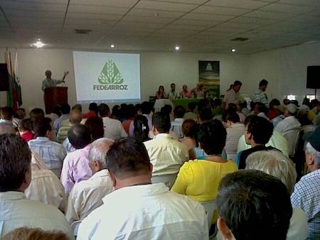 Desde las 10am los productores de arroz escucharon al presidente de la junta directiva de la Federación, Gonzalo Sarmineto, quien señaló que esta es una jornada incluyente que tenía como propósito contarle a los arroceros los planteamientos que se le hicieron al ministro de Agricultura y Desarrollo Rural, Rubén Darío Lizarralde. (Lea: La reelección de Santos solo tiene apoyo del 19% de los colombianos)