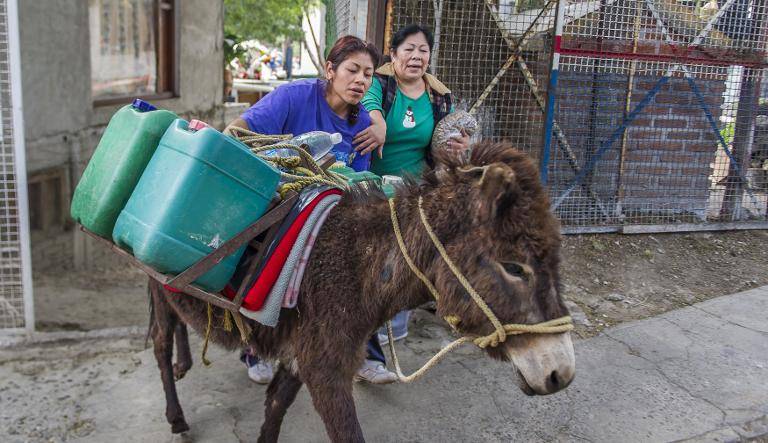 Como cada mañana desde hace 26 años, Delfina Salinas, una robusta mexicana de 55 años, prepara rutinariamente su burro con un armazón, canastas y bidones de plástico y camina media hora por empinadas calles de terracería junto a su animal en busca de agua.