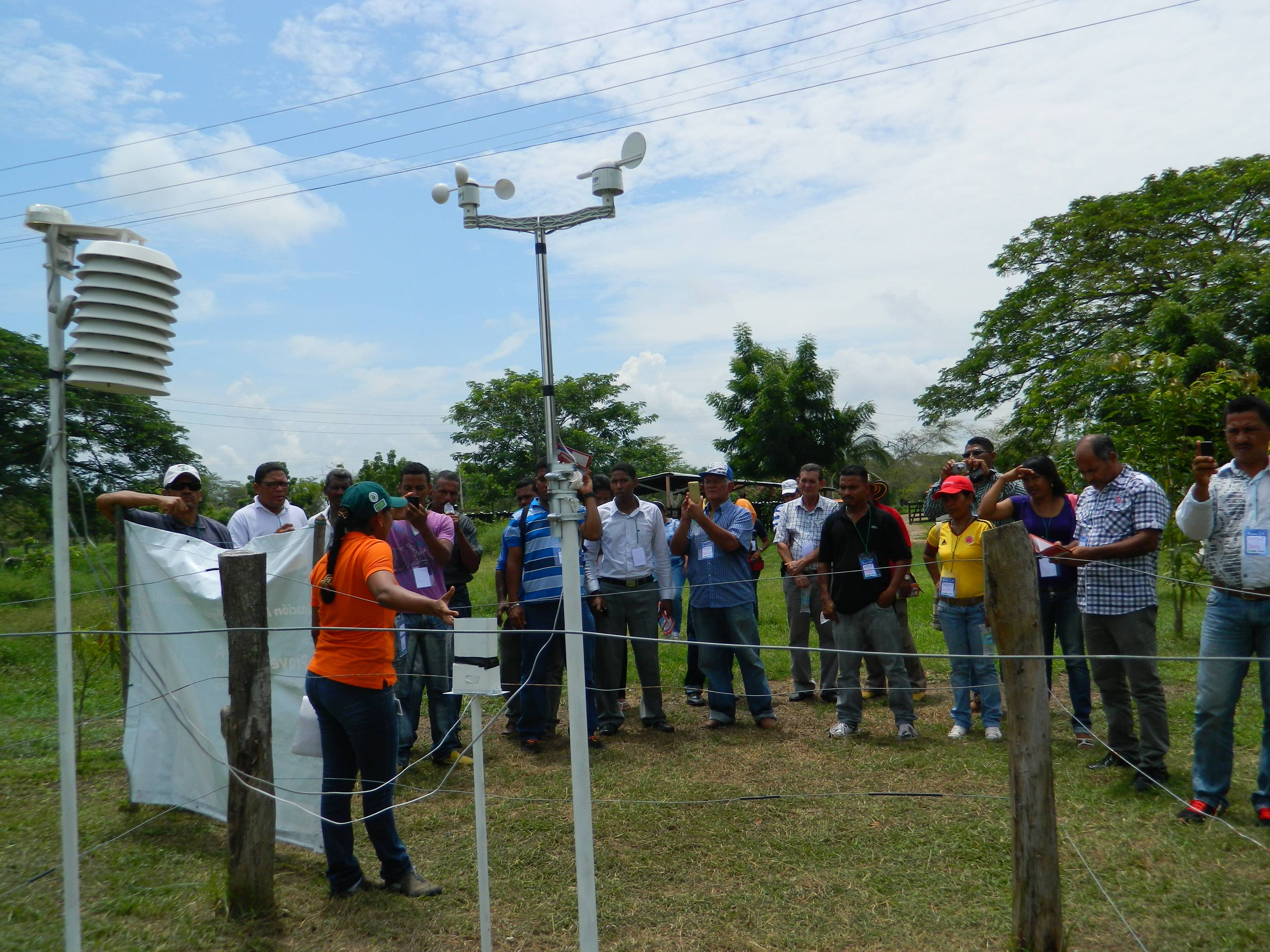 Las estaciones agroclimáticas miden las condiciones atmosféricas de estados y evolución del tiempo por medio de instrumentos especializados. Corpoica trasladó a los asistentes técnicos y productores a las estaciones climáticas automáticas de la vereda Castañal del municipio El Peñón – Bolívar y la vereda La Isla ubicada en el municipio de Suán en el departamento de Atlántico, donde conocieron en forma práctica el funcionamiento de las mismas y cómo obtener información en tiempo real a través de una aplicación descargable a los teléfonos celulares o en el computador.