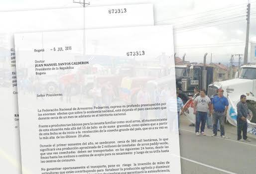 Rafael Hernández, gerente general de la Federación Nacional del Arroceros, Fedearroz, envió una carta al presidente Santos advirtiéndole sobre las funestas consecuencias que tendría el que no se garantice el transporte de la cosecha más alta de los últimos 20 años.