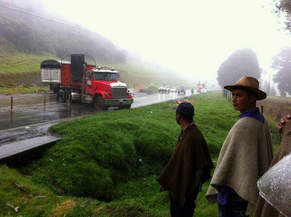 Al sur de Colombia, en el departamento del Cauca, el primer bloqueo comenzó sobre las 10:00am, en la vía que conecta a los municipios de Inzá y Belalcazar, donde más de 100 indígenas intentan mantener la vía cerrada.