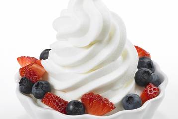 Más sano y con un menor aporte calórico que la mayoría de los helados, su consumo está de moda. Frecuentemente se comercializa acompañado con chocolate o siropes, de los cuales no conviene abusar, ya que también se pueden complementar con cereales o trocitos de fruta. Su escaso aporte de calorías (unas 103 kcal por cada 100 g) y los beneficios propios del yogur, hacen que este postre sea una de las estrellas del verano.