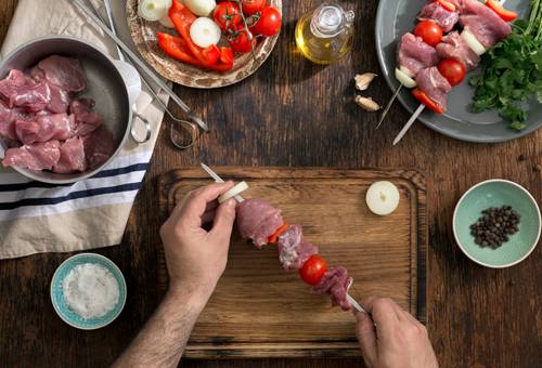 Cuando planifiques tu menú, elige platos que sean fáciles de preparar con anticipación, para que puedas pasar tiempo con tu familia, dice Visethann. “Las como brochetas de pollo que puedes marinar y preparar horas antes de la cena son perfectas para esto”, dice ella. “Elige un plato que le sea familiar o que hayas preparado antes”.