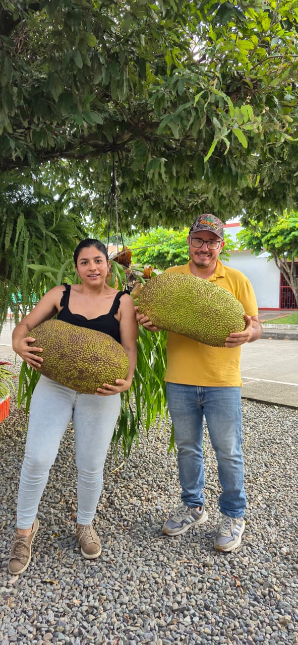 Diego Guarin, y su esposa Laura Lizet Reina Parrado, elaboran los productos a partir de frutas como la yaca (la que se ve en la foto). Foto: Cortesía.