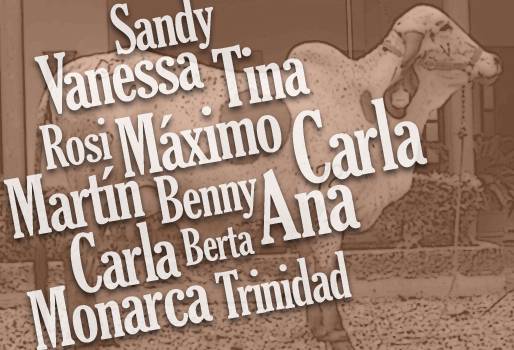 Luna, Francia, Vanesa, Martín, Serenata, Almendra, Benny, Don Tomás, Sandy y Popeye son toros y vacas que rondan predios del sur al norte colombiano, tras haber sido bautizados por sus dueños desde el momento de su nacimiento.