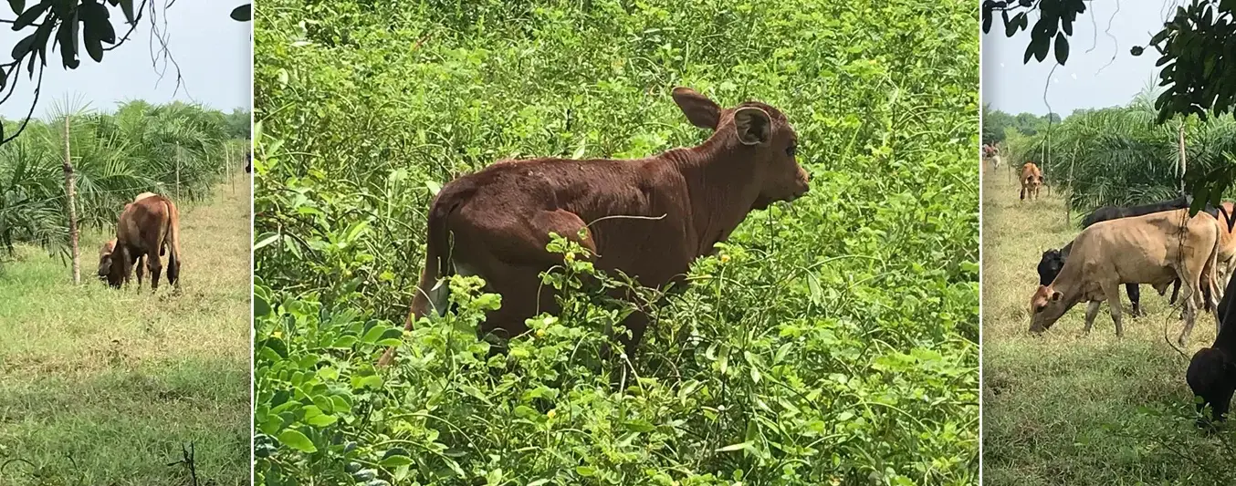 Actualmente, la finca cuenta con 25 hectáreas de palma de aceite y 5 intercaladas con coco, donde pastorean 120 terneros cebuinos comerciales y 82 animales criollos.