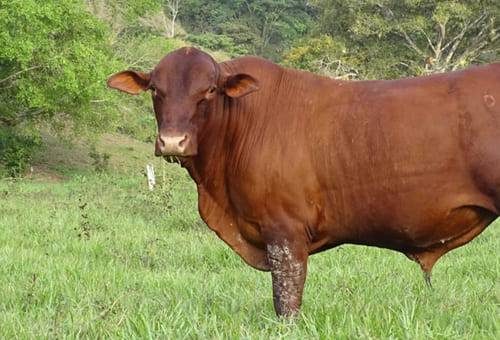 En cuanto al brahman rojo, lo escogió porque es un animal muy rústico, con un sistema digestivo fuerte, es una raza longeva, muy bien pigmentada, de origen hindú, también con el pelo corto y brillante, que suda abundantemente, es decir, tiene una buena cantidad de glándulas sudoríparas al igual que glándulas sebáceas lo que le permite defenderse muy bien de los ectoparásitos y los endoparásitos.