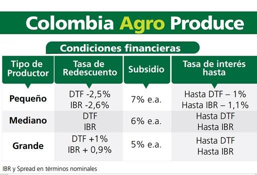 Esta línea cuenta con un plazo de 3 años y máximo uno de gracia. La tasa de interés para el pequeño productor es de DTF-1%, equivalente al 3.5% y para el mediano y grande del 4.5%.