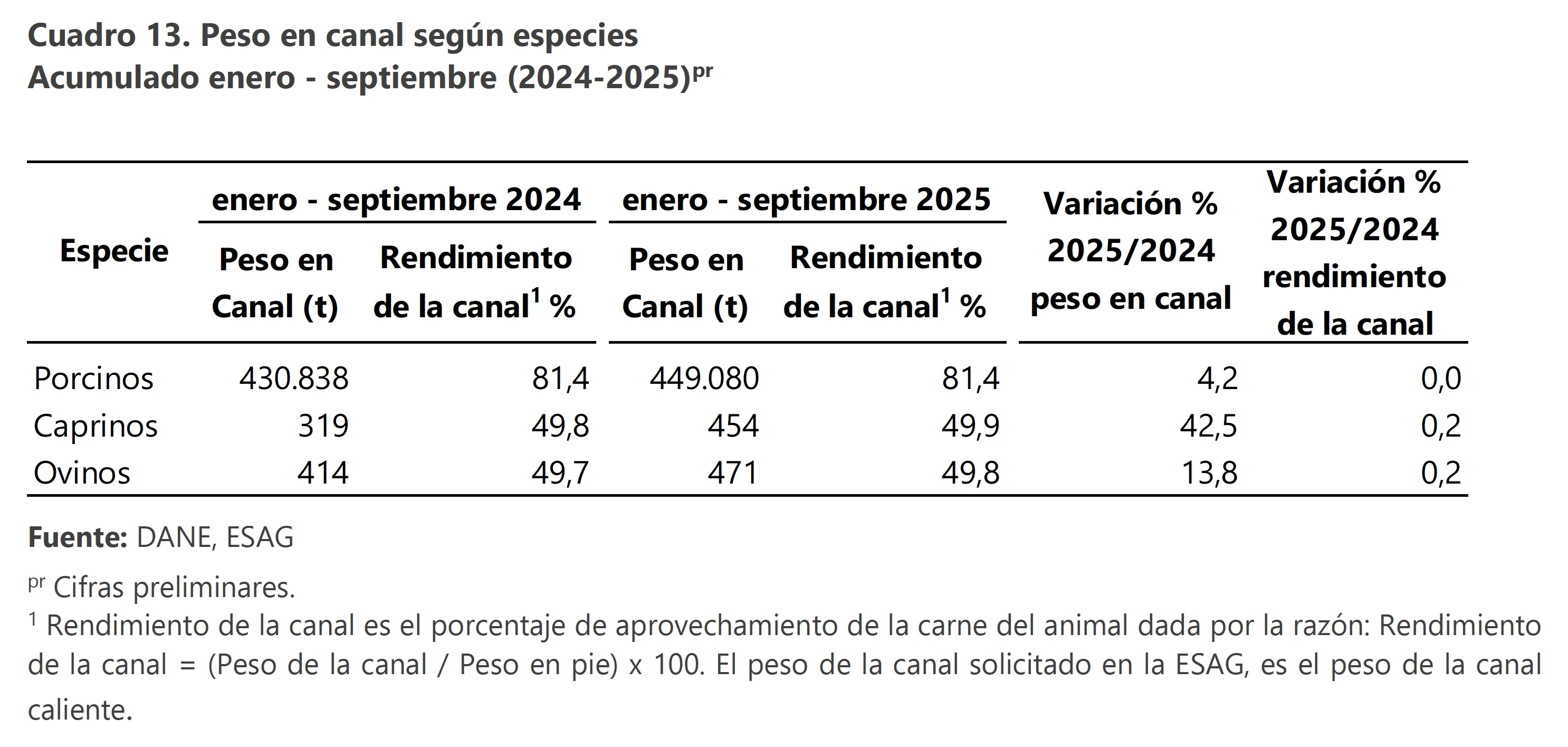 Comparación del sacrificio de los primeros 3 trimestres de 2025 vs. 2024. Fuente: DANE, ESAG