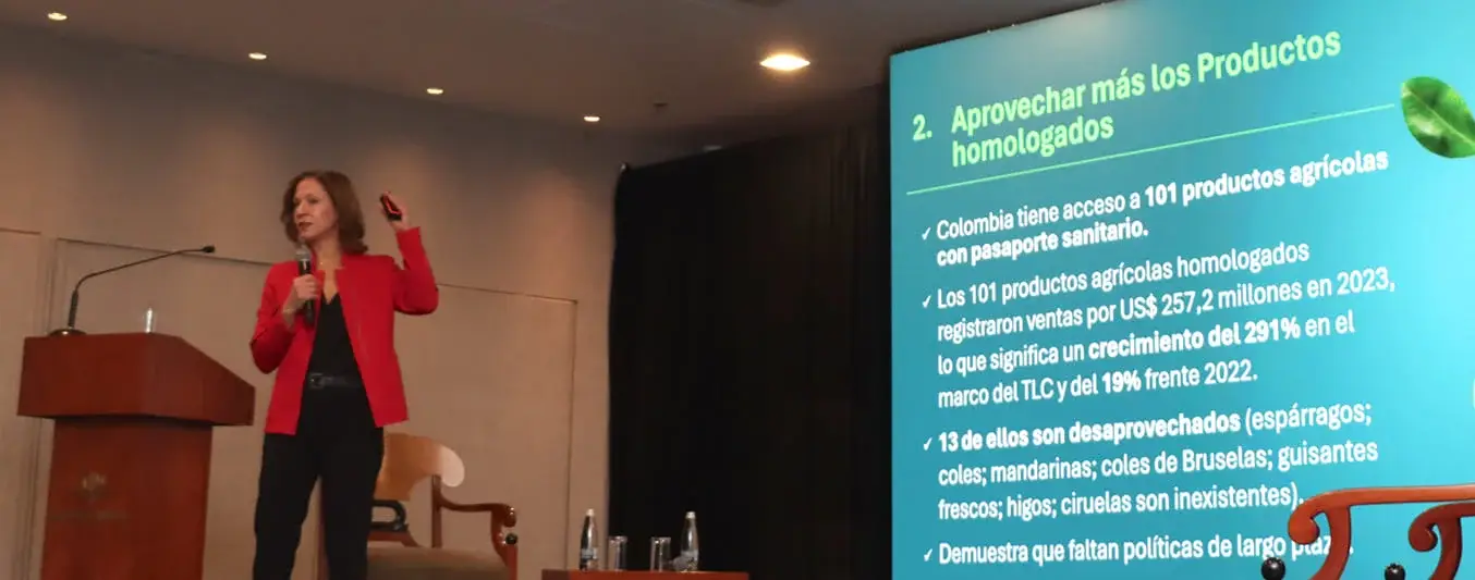 También hay que aprovechar más los productos homologados, Colombia tiene acceso a 101 productos agrícolas con pasaporte sanitario los cuales registraron ventas por US$252,2 millones en 2023, lo que significa un crecimiento del 291 % en el marco del TLC y 19 % frente a 2022. No obstante, señaló, 13 de ellos son desaprovechados como es el caso de espárragos, coles, mandarinas, guisantes frescos, higos y ciruelas, entre otros, lo que demuestra que faltan políticas de largo plazo.