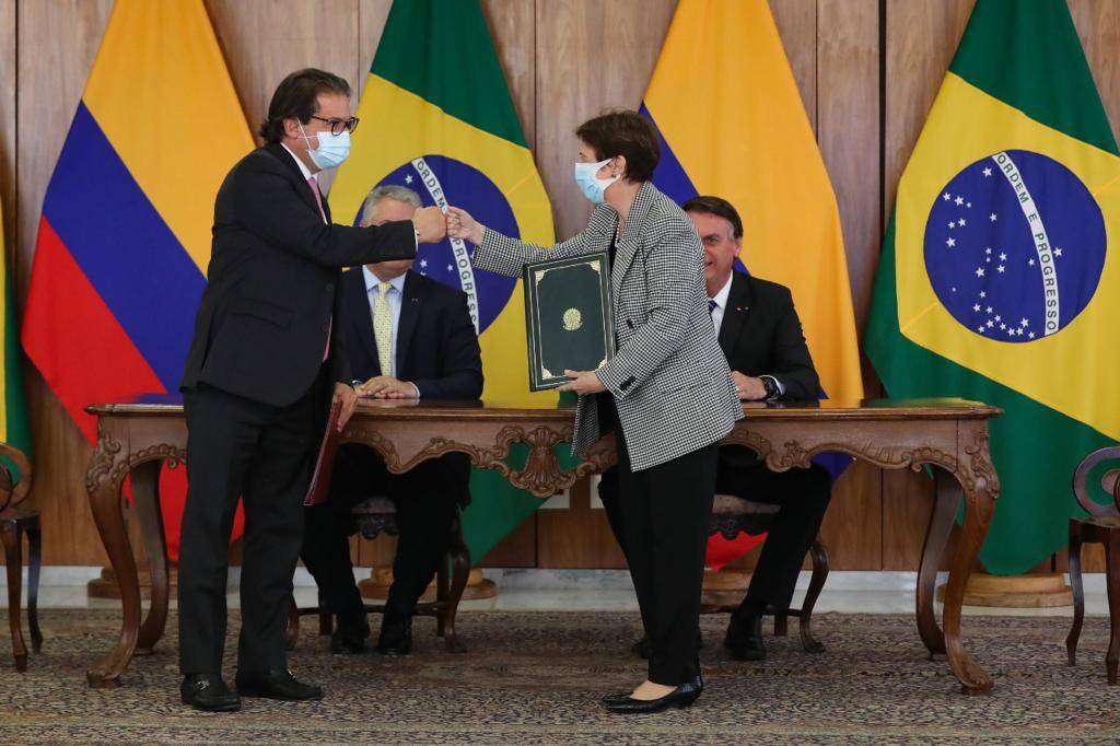 En el marco de la visita del presidente Iván Duque a Brasil, el ministro de Agricultura y Desarrollo Rural, Rodolfo Zea Navarro, y la ministra de Agricultura de Brasil, Tereza Cristina Corrêa da Costa Días, firmaron un Memorando de Entendimiento, con el cual se trabajará en temas como la producción agropecuaria, el desarrollo competitivo y la sostenibilidad del sector agropecuario de los dos países.