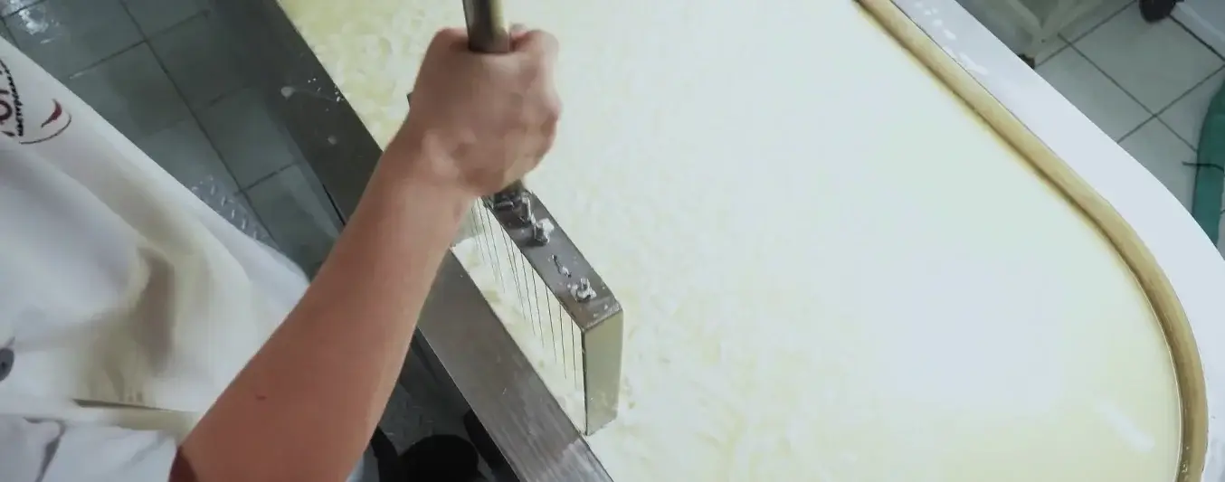 Posteriormente se drena el suero y se realiza el corte de la cuajada en trozos más pequeños para permitir la liberación de una mayor cantidad de suero. La cuajada cortada se deja fermentar para que alcance la acidez deseada con lo que se permite a la hora del hilado la elasticidad y el sabor de la mozzarella. Este hilado de la cuajada se realiza en suero o agua calientes y de manera manual o con la ayuda de una hiladora mecánica amasando y estirando esta masa de la cuajada repetidamente hasta que se vuelve suave y elástica.