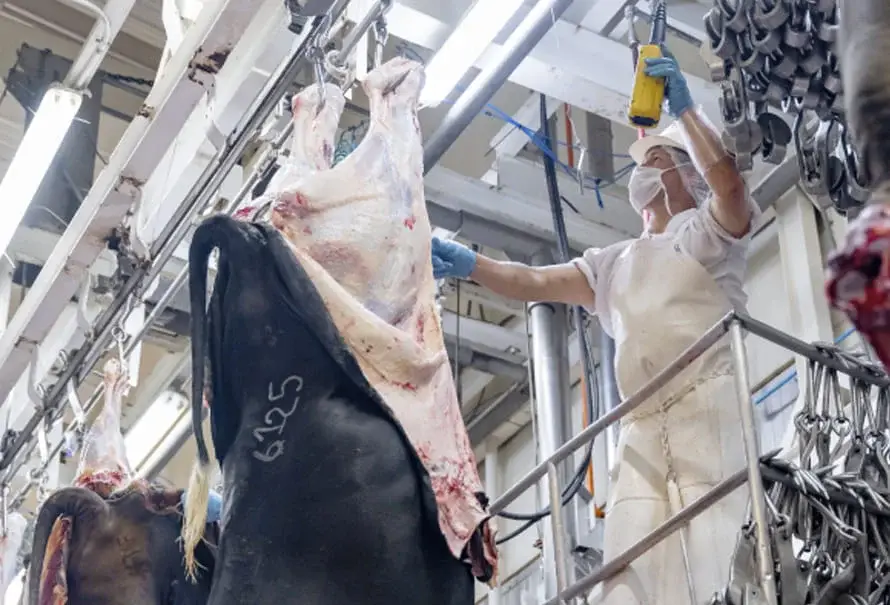 El peso en pie total del ganado vacuno que se llevó a sacrificio durante el 2023 fue 989.474 toneladas, 0,2 % por debajo del peso registrado en el mismo periodo del año anterior. Medida por su peso, la producción de carne en canal vacuna durante los primeros nueve meses de este año fue de 521.842 toneladas (-0,4 %). El rendimiento de la canal disminuyó 0,3 % para esta especie.