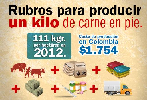 Alfonso Santana Díaz, jefe de Investigaciones Económicas de Fedegán y director del estudio, sostiene que en promedio el costo de producción a nivel nacional fue de $1.754 por kilo, con un aproximado de 111 kilogramos por hectárea al año, durante 2012.