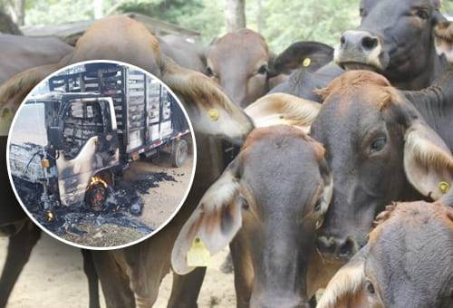 En San Onofre un bus de Mutual Ser fue incinerado por un valor de $200 millones; también quemaron un camión 600 en vereda Pita de Tolú, por $300 millones; igualmente un tractor Ford quemado en San Antonio de Palmito, $30 millones; 2 taxis incinerados en Sincelejo, $100 millones;. 2 motos quemadas en Tolú Viejo, $5 millones. (Lea: Por paro y bloqueos de vías, pérdidas para los ganaderos se acercan a $350 000 millones)