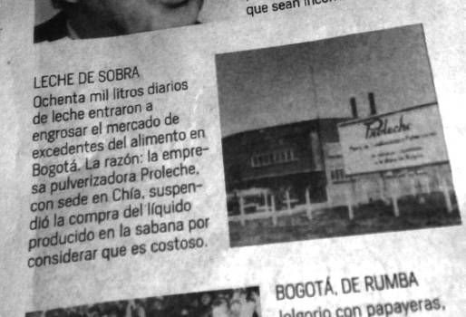 El 2 de agosto de 1988 la empresa pulverizadora Proleche, con sede en Chía, Cundinamarca, dejó de comprar el lácteo producido en la Sabana de Bogotá al considerarlo muy costosa.