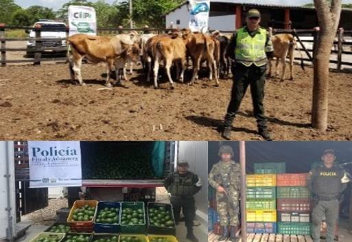 En las últimas dos semanas, las autoridades incautaron 162 millones de pesos representados en queso, leche, azúcar, maíz, yuca, carne en canal, aguacates, unidades de semovientes, entre otros.
