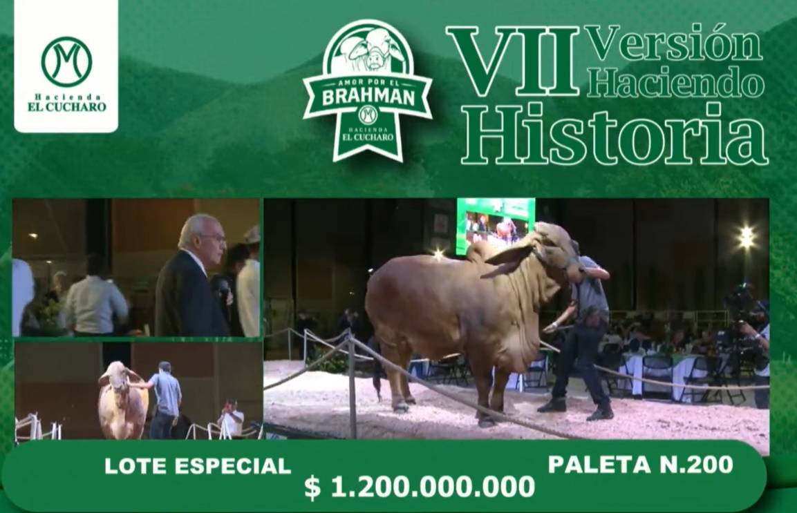 En el Gran Remate VII versión Haciendo Historia - Amor por el Brahman de Hacienda El Cucharo se vendió una vaca por $1.200 millones.
