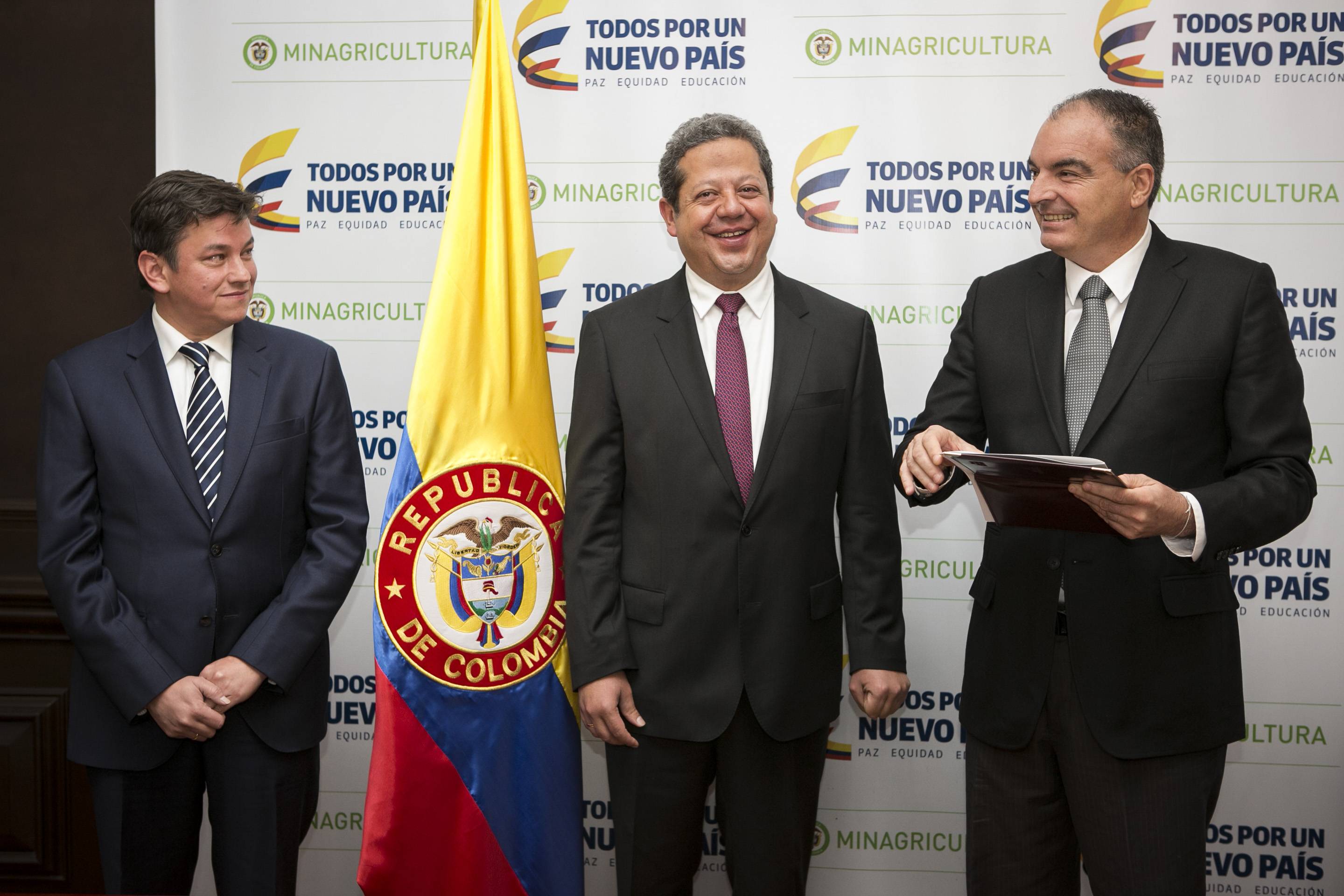 “Con estos funcionarios vamos a llegar a las bases campesinas, indígenas y afro, queremos que utilicen los servicios del Banco y Finagro para masificar el crédito a pequeños, medianos y grandes, aún más en el posconflicto pues del éxito de la labor en el campo depende la posibilidad de que sus pobladores tengan un mejor bienestar”, dijo. El ministro anunció la descentralización de las entidades financieras del sector agropecuario y les solicitó que sus funcionarios penetren las regiones y se conecten con la gente, planteando soluciones innovadoras de acceso al crédito, la herramienta más importante para el crecimiento de las empresas rurales. (Lea: Crédito subsidiado tendrá el doble de recursos este año) “Tenemos una hoja de ruta trazada y daremos un viraje para descentralizar la entidad de la mano con el Ministerio. Estoy convencido de que daremos un giro del aspecto comercial a convertirnos en un Banco de Fomento Agropecuario”, señaló Dussan, nuevo presidente del Banco Agrario. Por su parte, Chávarro indicó que “vamos a estar en un diálogo social permanente con el país campesino y con los gremios buscando irrigar más recursos al sector agropecuario con beneficios y gestiones para la reactivación del sector”. Luis Enrique Dussan Cuenta con una trayectoria profesional de 22 años y se destaca por su amplio conocimiento del sector agropecuario, pues viene de ocupar la presidencia de Finagro, y previamente había ejercido como: Asesor y Director de Desarrollo Rural en el Ministerio de Agricultura y Desarrollo Rural, así como Subgerente y Gerente del Incora. Asimismo, entre los años 2002 y 2014 se desempeñó como Representante a la Cámara por el departamento del Huila en la Comisión Quinta, encargada de manejar, entre otros, temas relacionados con el agro y el medio ambiente, donde fue autor y ponente de varias de las principales leyes y debates, que en los últimos años se realizaron para los sectores agropecuario, ambiental y minero-energético. (Lea: Grandes ganaderos son incluidos en programa de retención de vientres) Es ingeniero civil de la Universidad de Los Andes y actualmente está culminando un MBA en Gestión de Agronegocios en la Universidad Federal de Paraná - Brasil. Carlos Ramiro Chávarro Cuéllar Cursó sus estudios de derecho en la Universidad Libre de Bogotá y como Representante a la Cámara se desempeñó en la Presidencia de la Comisión Segunda durante la vigencia 2003-2004. Durante su periodo como Senador 2010 - 2014, ha sido vicepresidente del Senado de la República, Presidente de la Comisión Segunda, Vicepresidente de la Comisión de Emergencia Invernal y miembro de la Comisión de Seguimiento a la crisis agropecuaria. Es coautor de la Ley que permite extender los beneficios del 4X1000 para destinar más de$ 3.5 billones al sector agropecuario, complementada y proyectada con beneficios y gestiones para la reactivación del sector, e impulsor de la Ley de Defensa Técnica para miembros de la Fuerza Pública. Actualmente cursa un MBA.