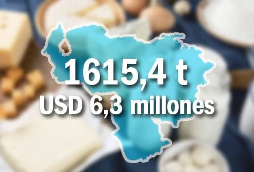 El país que más compró leche y productos lácteos de origen Colombia fue Venezuela con 1615,4 toneladas y un valor de USD 6,3 millones (27 %), representados en leche en polvo entera (1590 toneladas), leche en polvo descremada (25 t), mantequilla y queso rallado o en polvo.