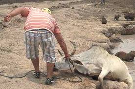 Vacas, chigüiros, tortugas, babillas y peces, son los animales más afectados por el fuerte verano que se siente en Paz de Ariporo, el cual terminaría en abril, según los datos del Ideam.