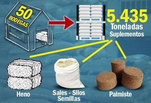“Las bodegas se establecerán en los sitios donde hay mayor afectación climática por la sequía. En total, de las 50 bodegas, 27 son principales y 23 satélites”, acotó Acosta Pérez. (Lea: Bodegas ganaderas ayudan a mitigar crisis del sector)