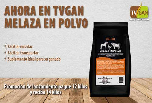 Al utilizar la melaza en polvo, usted obtiene una mezcla mucho más homogénea y sin desperdicio. Además, un kilo de este producto alcanza para 120 litros de agua. Para que usted pruebe este producto, TVGAN está ofreciendo 2 kg adicionales por la compra de 12 kg de melaza en polvo.