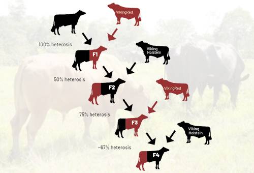 Citaron un estudio de campo a gran escala realizado en 2006 que comparó los resultados de fertilidad y supervivencia de hembras de razas holstein con los cruces de holstein con rojo sueco, rojo noruego, montbéliarde y normando.