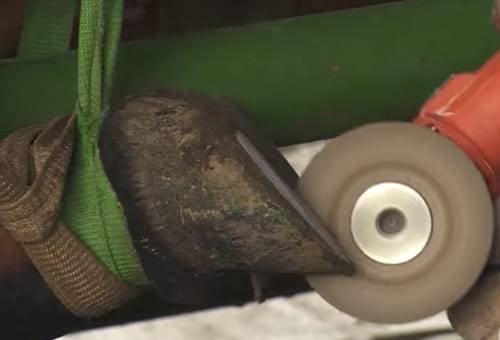 El tercer paso es pulir la suela y la fosa axial. Primero se hace un despeje de la suela con la pulidora para mirar qué ahí y cuidando siempre el talón el cual es mejor no tocar porque afecta la pezuña ya que es como el amortiguador.