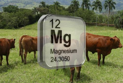 El requerimiento de Mg para ganado de carne en pastoreo es: desarrollo 0.1 %, gestación 0.12 % y lactancia 0.2 % del total de la materia seca ingerida (MS). Para ganado lechero, es de 0.2 a 0.3 % MS, y para ovinos es de 0.12 % a 0.18 % MS.
