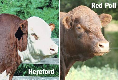 Otra raza eminentemente roja es la hereford, considerada como “una de las razas productoras de carne más importantes del mundo”. Tiene muchas variedades, pero casi todos los ejemplares son principalmente rojos con blanco en el pecho, el lomo y la cara.