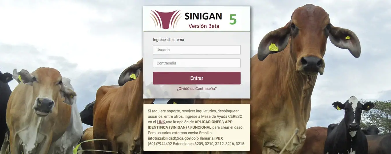 El primer paso es ingresar a la página web de Sinigan (https://sinigan.ica.gov.co). Luego digitar el nombre del usuario y la contraseña. Así mismo, hay que seleccionar el predio a través del cual desea ingresar a la plataforma.
