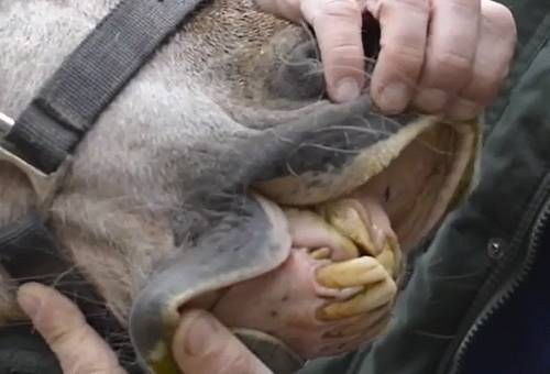 - Vista de perfil de la arcada dentaria: Como consecuencia de la forma y desgaste de los incisivos, la vista de perfil de la oclusión de las arcadas dentarias se altera y se torna angulada, haciéndose cada vez más prominente al avanzar la edad del caballo. (Lea: Crearán diccionario para entender comunicación entre caballos)