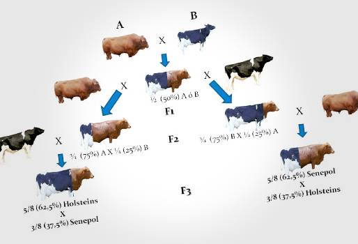 Los sistemas de cruzamientos se emplean como técnica de selección artificial para mejorar la calidad de los ganados y mantener la productividad deseada, tanto en carne como en leche. Se escogen por su importancia económica y por su genética.