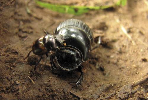 El cucarrón estercolero es el responsable de la remoción del suelo en los sistemas ganaderos, pues gracias al enterramiento del estiércol bovino que realiza se genera mejoras en los forrajes para los ganados.