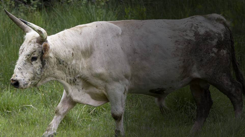 Estos animales son de color blanco muy puro, de cuerpos vigorosos, temperamento agresivo y combatiente con enormes cuernos. Su carácter malhumorado e impredecible los hace capaces de alcanzar una velocidad de 48 km/h, en una embestida atacando todo lo que consideran como una amenaza.