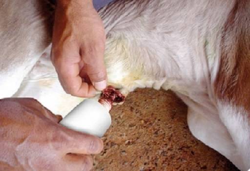 Se deberá cortar el cordón umbilical con tijeras, a unos 5 centímetros del abdomen y se realiza una desinfección con una solución de yodo del 7 al 20% o con tintura de yodo (yodo concentrado) Dice Andrés F. Ruiz J., MV, MSc., Director técnico, Genbiogan, en su web, que es importante tener en cuenta para la adecuada curación del ombligo en los terneros recién nacidos, cortar el cordón umbilical con tijeras, a unos 5 centímetros del abdomen y se realiza una desinfección con una solución de yodo del 7 al 20% o con tintura de yodo (yodo concentrado). También se puede utilizar una solución de Clorhexidina al 0,5%. Señala que se utiliza un recipiente de boca ancha, donde se sumerge todo el cordón para su desinfección. También se puede utilizar el envase del sellador de pezones. Se puede realizar la ligadura del cordón con un hilo, previa desinfección y eliminación de los líquidos presentes en el cordón. La ligadura se realiza con material estéril a 2,5 cm del cuerpo del ternero. Advierte que se debe ligar o anudar el cordón cuando las crías se encuentren en buenas condiciones de ambiente y haya buena desinfección. Si el ambiente es húmedo y contaminado se puede dejar sin ligar el cordón para un mejor drenado de los líquidos, pero de todas formas lo conveniente es mantener la cría en un ambiente limpio y seco y el ombligo limpio y desinfectado. Hace énfasis en que la desinfección se debe realizar diariamente hasta la completa cicatrización del ombligo, debe estar seco y sano, sin acumulación de líquidos (Gutierrez & Ruiz, 2005; Berra & Osacar, 2013). Señala que es conveniente incluir además un cicatrizante y repelente en pasta o en aerosol para el control de gusaneras. Los productos en aerosol son de fácil aplicación y evitan ensuciarse, y los de pasta o crema son más persistentes, es decir que el producto va a permanecer más tiempo actuando. En algunos casos se pueden utilizar endectocidas inyectables en zonas y épocas del año donde aumenta la presentación de gusaneras en los ombligos de los terneros recién nacidos, es una práctica que puede dar buenos resultados y confiere protección a los terneros contra las miasis o gusaneras en el primer mes de vida (Ruiz, 2016).